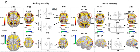 综上所述,本研究为理解大脑抑制功能的通用神经机制给予了统一的理论框架。但任何研究都存在其局限性与可供未来探索的方向。例如,本研究中的跨模态解码分析发现,从听觉到视觉的抑制状态预测是稳健的,而反向预测的效率则相对较弱,这种解码效果的不对称性背后的深层机制值得未来进一步探究 。此外,研究还观察到,抑制过程对不同信息特征的衰减效应存在模态特异性,即在不同感觉通道中,“模糊化”处理的具体特征有所不同,系统性地解析这些模态依赖的抑制策略将是未来一个有趣的研究方向 。
