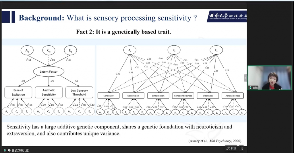 3月12日晚,西南大学心理学部晏妮教授做客脑客中国科研直播间,进行了以“敏感特质与差异开展:构建儿童差别易感性的整合模型”为主题的专业分享。晏妮教授及其团队近年来聚焦儿童感觉加工敏感性这一核心特质,从核心概念、研究疑问、研究发现三个板块,探讨了儿童在面对家庭环境影响时所表现出的差别易感性机制,并结合实证研究成果展开系统阐述,以下为本次直播的主要内容回顾: